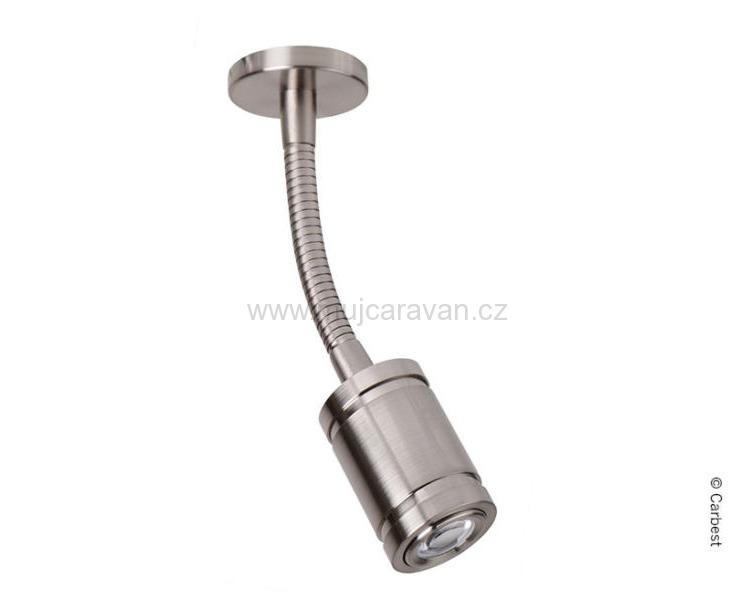 LED lampička na čtení, provedení kartáčovaný nikl, stmívatelná, pokud je k dispozici další stmívač. Integrovaný vypínač v hlavě lampy.