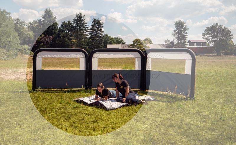 Nafukovací ochrana proti větru a zvědavými pohledy Helgoland Air 400 s průhlednými okny. Nepotřebuje žádné výztuhy, snadno se postaví nafouknutím. Ochrana proti větru se skládá ze 2 segmentů po 200 cm a má pohodlnou výšku 155 cm. Každý segment lze nafouknout a použít samostatně. Všechny segmenty lze podle potřeby spojit pomocí zipu. Volitelně je k dispozici rozšiřující modul (č. 900540).