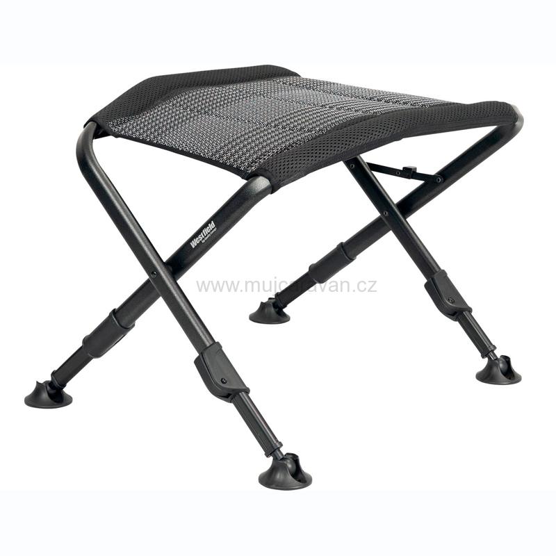 Podnožka Oblige se 4 výškově nastavitelnými nohami stojí stabilně na jakémkoli povrchu a lze ji také použít jako postranní stoličku s nosností do 100 kg.