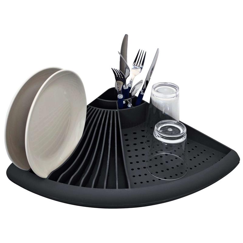 - Rohový odkapávač na nádobí šedý