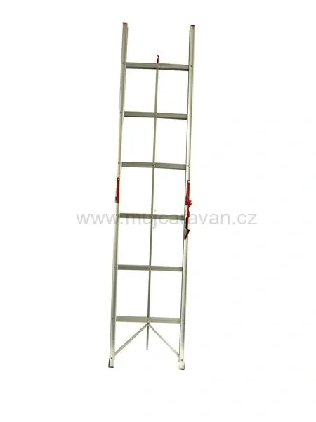 Skládací hliníkový žebřík s délkou 210 cm. Vysoká nosnost až 150 kg. Lehký, váží pouhých 3,8 kg. Velmi pohodlný se širokými stupni 44,5 x 4,2 cm. Ideální pro skladování v karavanech nebo obytných automobilech.