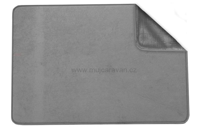 Horní strana světle šedý polyesterový velur, spodní strana protiskluzová síťovina, jádro vyrobené z 8 mm PU pěny. Pro úsporu místa může být podložka srolována.