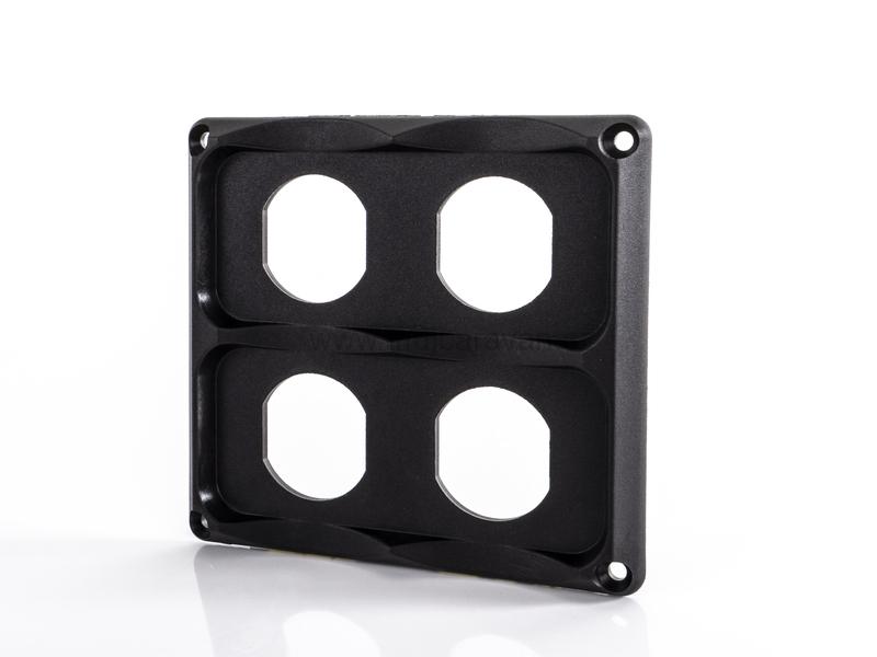 Vestavný rámeček, 4-cestný pro umístění čtyř zásuvek. Individuálně konfigurovatelné se všemi napájecími zásuvkami CARBEST / USB zásuvkami / voltmetry.