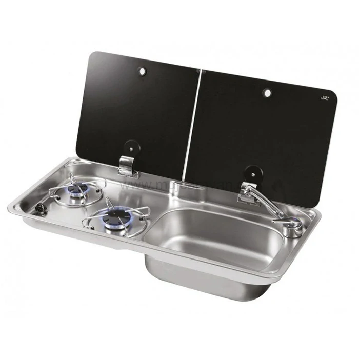 Kombinace dvouhořákového vařiče a dřezu FL1765, dřez vpravo