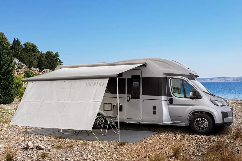 Sluneční clona Samana se snadno připevňuje k markýze pomocí 5 mm kedrové lišty vpředu a poskytuje tak dokonalou ochranu před sluncem a soukromí.
