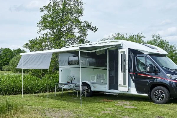 Stínící clona je navržena tak, aby se namontovala přímo na markýzu vašeho karavanu nebo vozidla a poskytla tak další stín nad rámec toho, co markýza již nabízí. Připevnění k stříšce je rychlé a snadné zasunutím lišty do kedrové drážky. Stínící clona poskytuje stín před sluncem a zároveň umožňuje proudění vzduchu. Je vhodná pro markýzy Thule, Dometic a Fiamma.