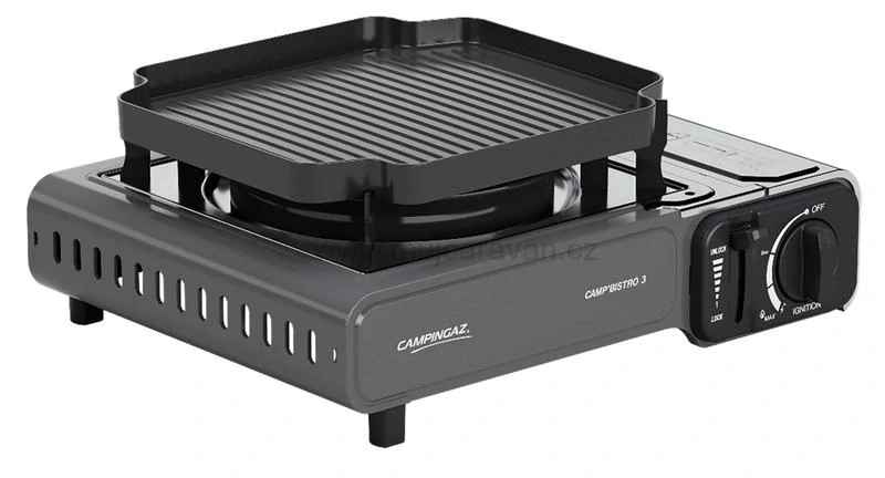 - Stolní kartušový vařič Campingaz Camp Bistro 3 s grilovací plotýnkou