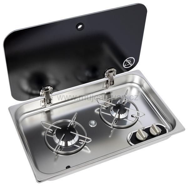 - Vestavný plynový vařič s víkem a 2 hořáky